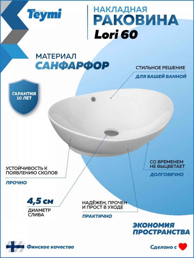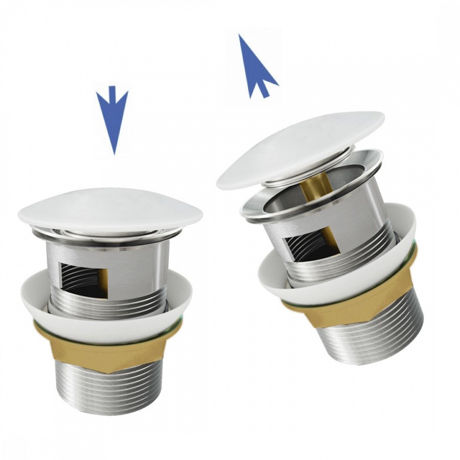 3. Донный клапан Teymi для раковины с переливом, белый.