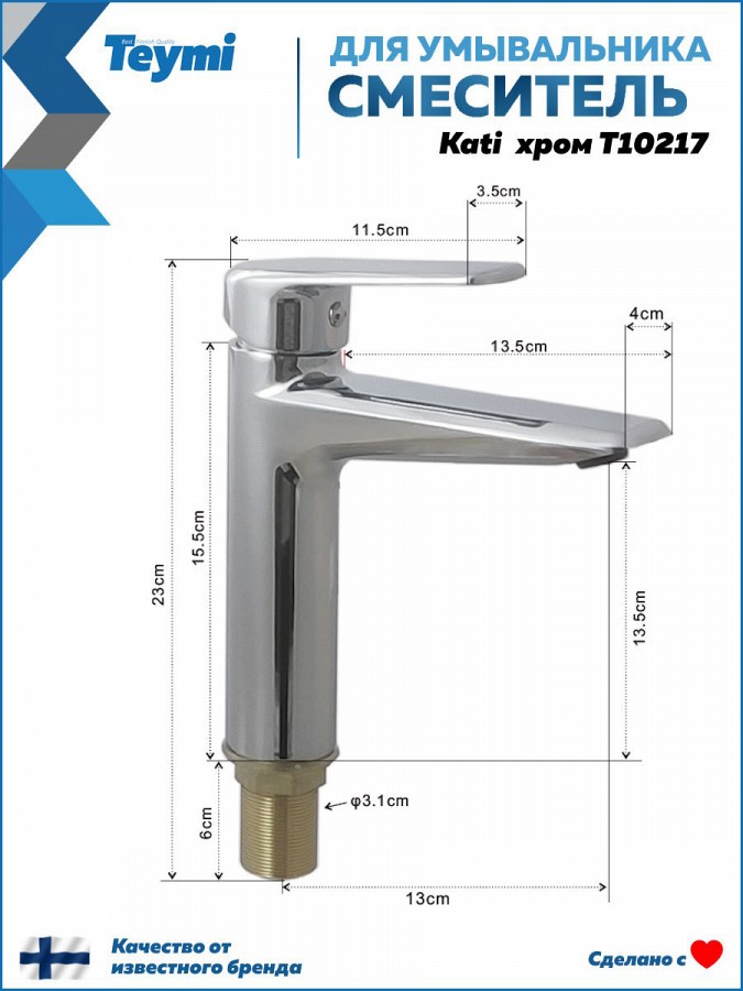 3. Смеситель для раковины Teymi Kati, хром.