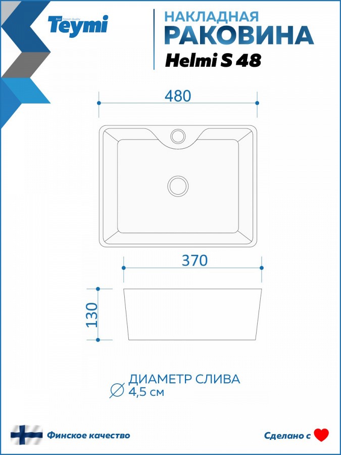 2. Раковина накладная Teymi Helmi S 48 белая.