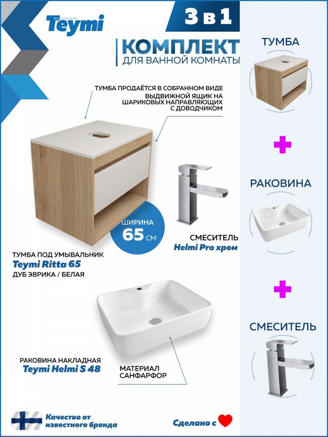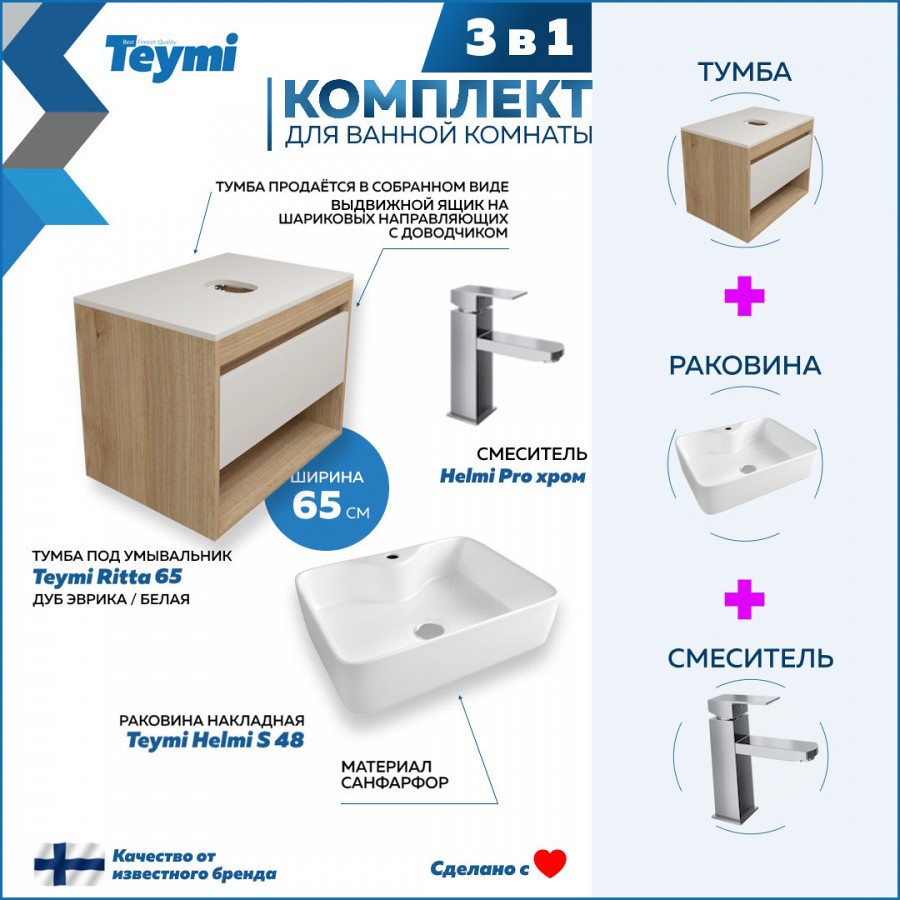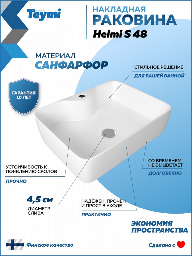 2. Раковина накладная Teymi Helmi S 48 белая.