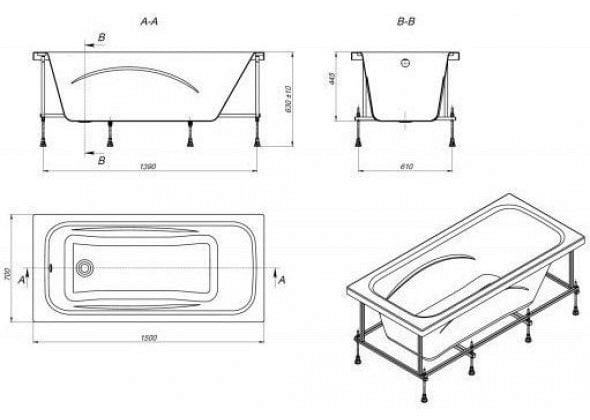 Установка ванны без г/м и без смесителя (чугун , литьевой мрамор)
