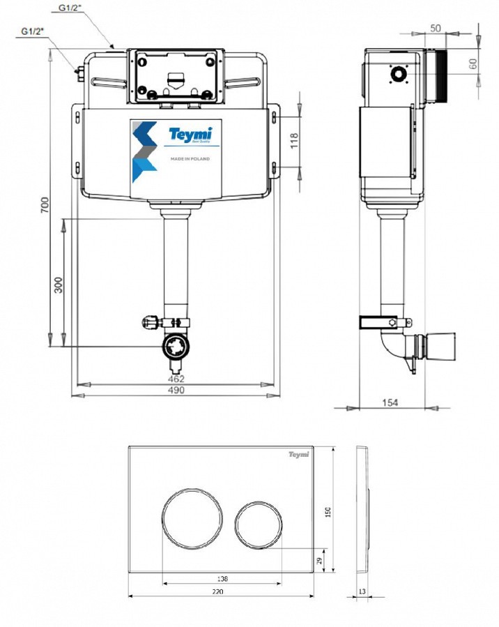 Вам понравился товар Бачок скрытого монтажа T70013 для приставного унитаза Teymi Aina с клавишей Lina хром глянец?