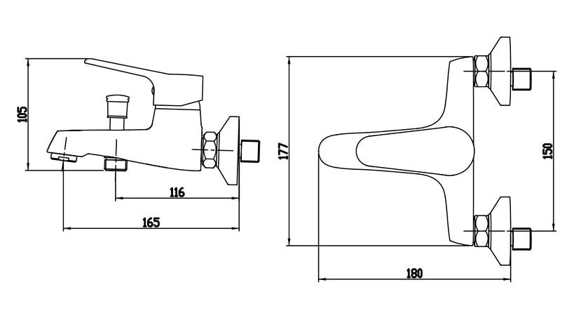 Смеситель для ванны с настенной гарнитурой