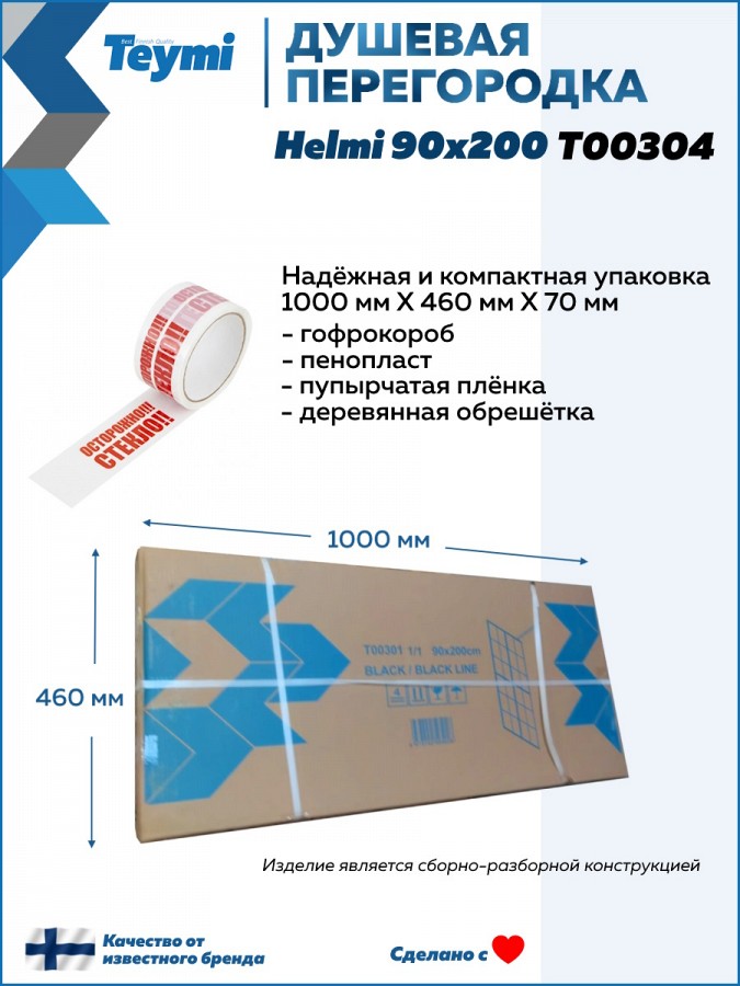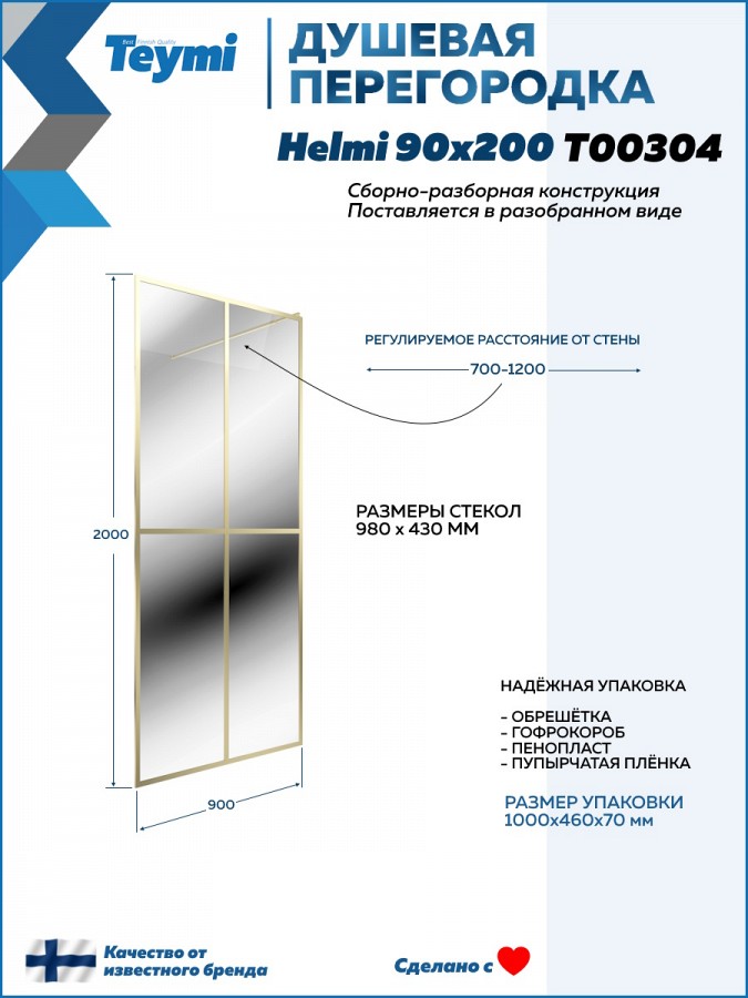 Душевая перегородка Teymi Helmi 90x200 см T00304 – это идеальное душевое ограждение, которое обеспечит комфорт и стильный внешний вид вашей душевой зоне.
