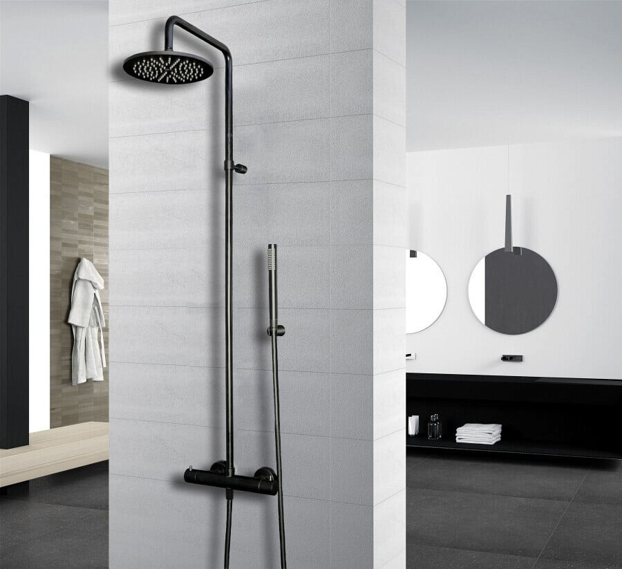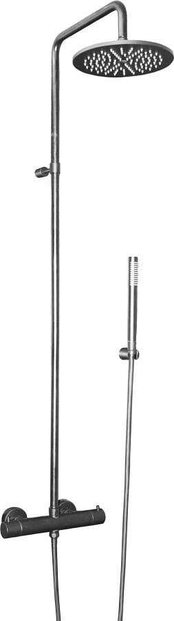 <div><ul class='feature-list'><li>Габариты (шгв): 26x30x126,5 см</li><li>латунь, нерж. сталь, ПВХ</li><li>черная</li><li>оснащение: душевая штанга, настенный держатель, смеситель, шланг для душа</li><li>с механизмом термостатический картридж</li><li>подводка 1/2"</li><li>размер верхнего душа: 22.5 см</li><li>количество режимов струи: 1</li><li>длина шланга: 150 см</li><li>пластиковый шланг</li></ul></div>