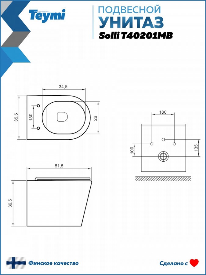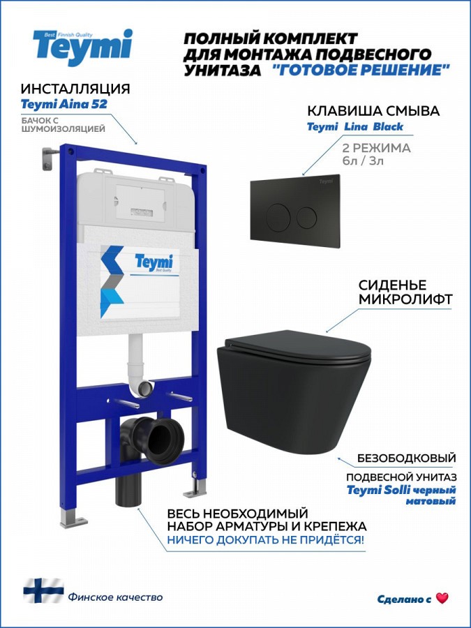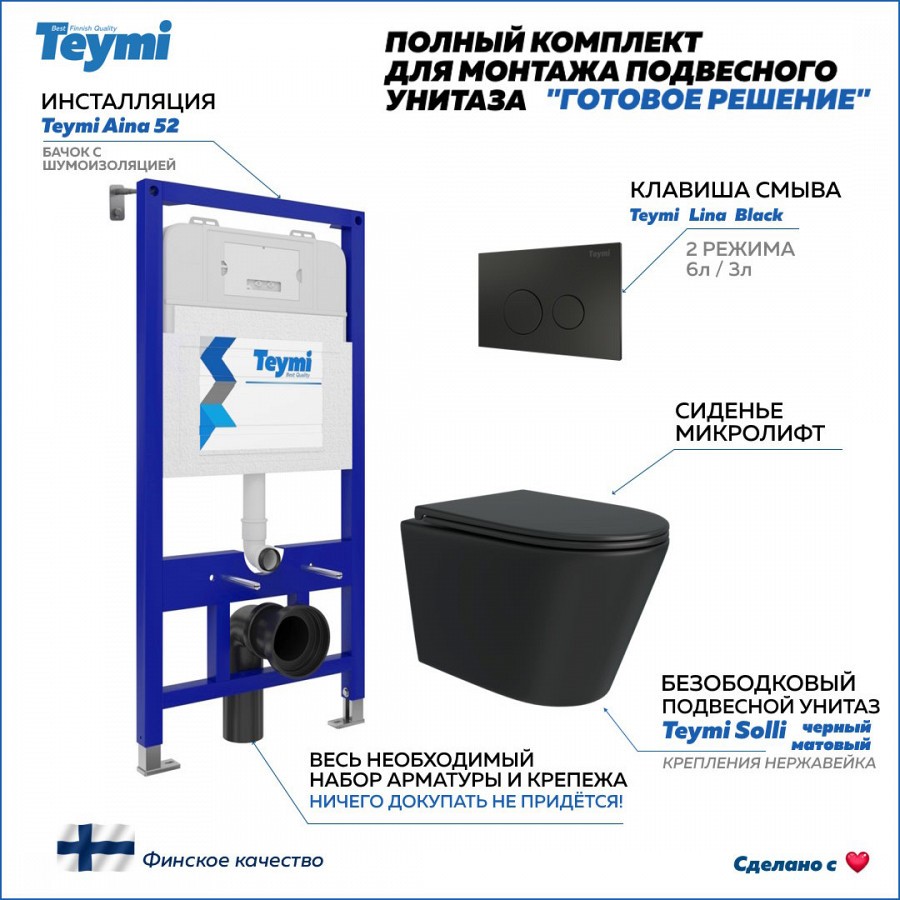 -- унитаз подвесной TEYMI Solli T40201MB черный;