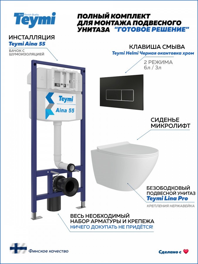 обращаем ваше внимание на то, что система инсталляции TEYMI AINA 55 может быть также укомплектована другими клавишами смыва или подвесными унитазами от бренда TEYMI (вы можете найти их на этом сайте по указанным артикулам).