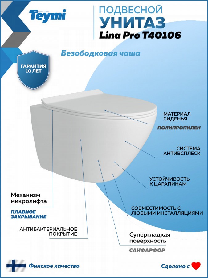 -- унитаз подвесной безободковый TEYMI LINA PRO T40106;