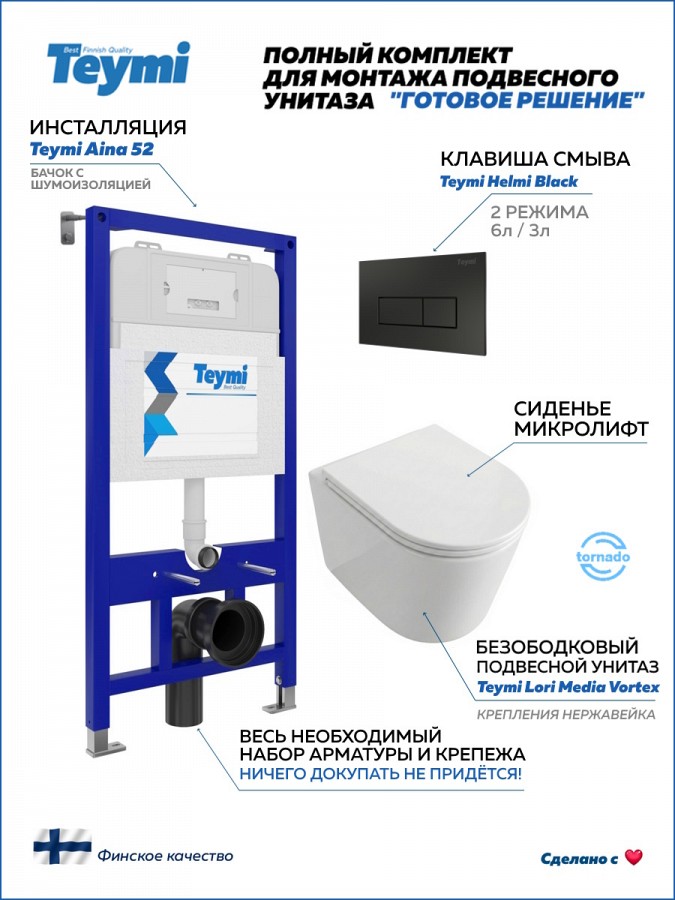 -- унитаз подвесной торнадо Teymi Helmi Lori Media Vortex T40504;