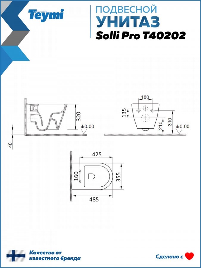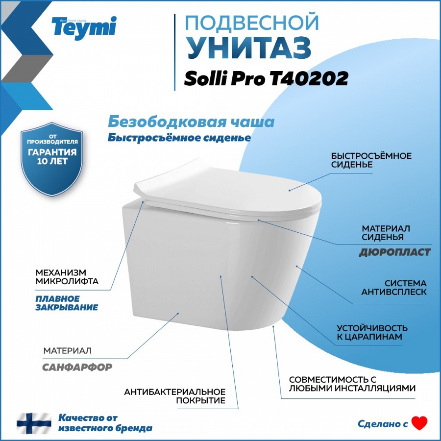 -- унитаз подвесной TEYMI Solli Pro T40202;