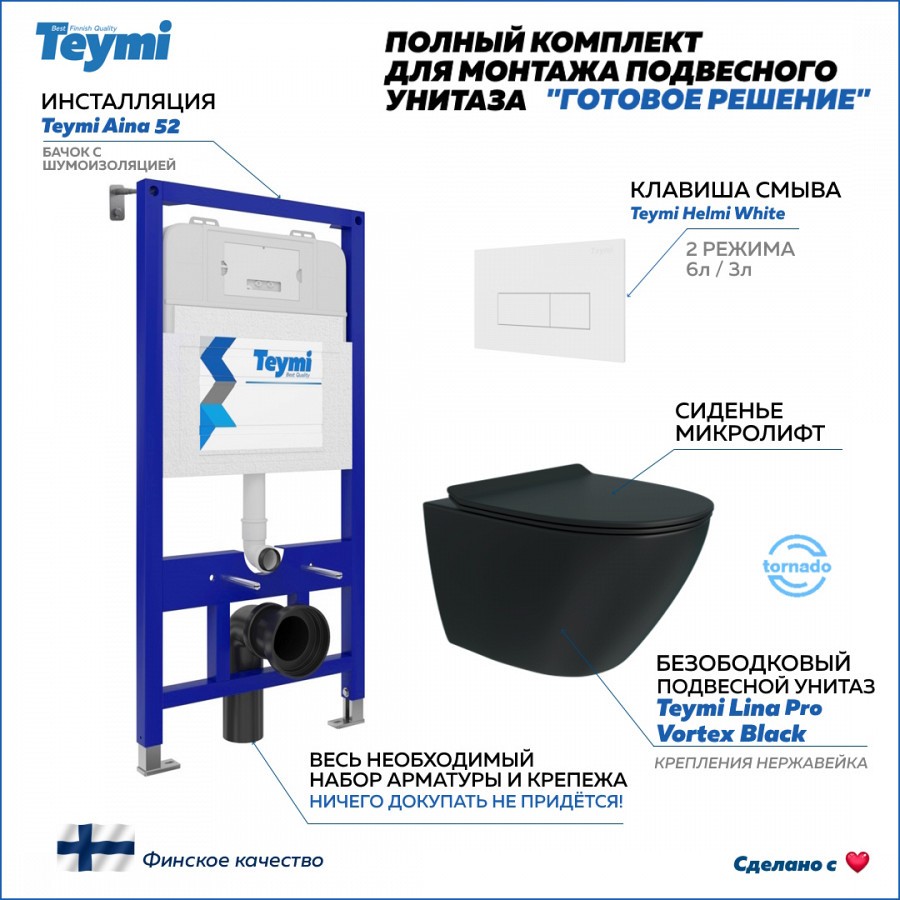 -- унитаз подвесной TEYMI LINA PRO VORTEX BLACK T40114.