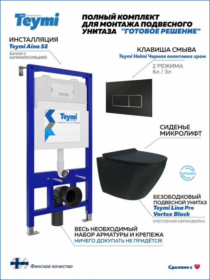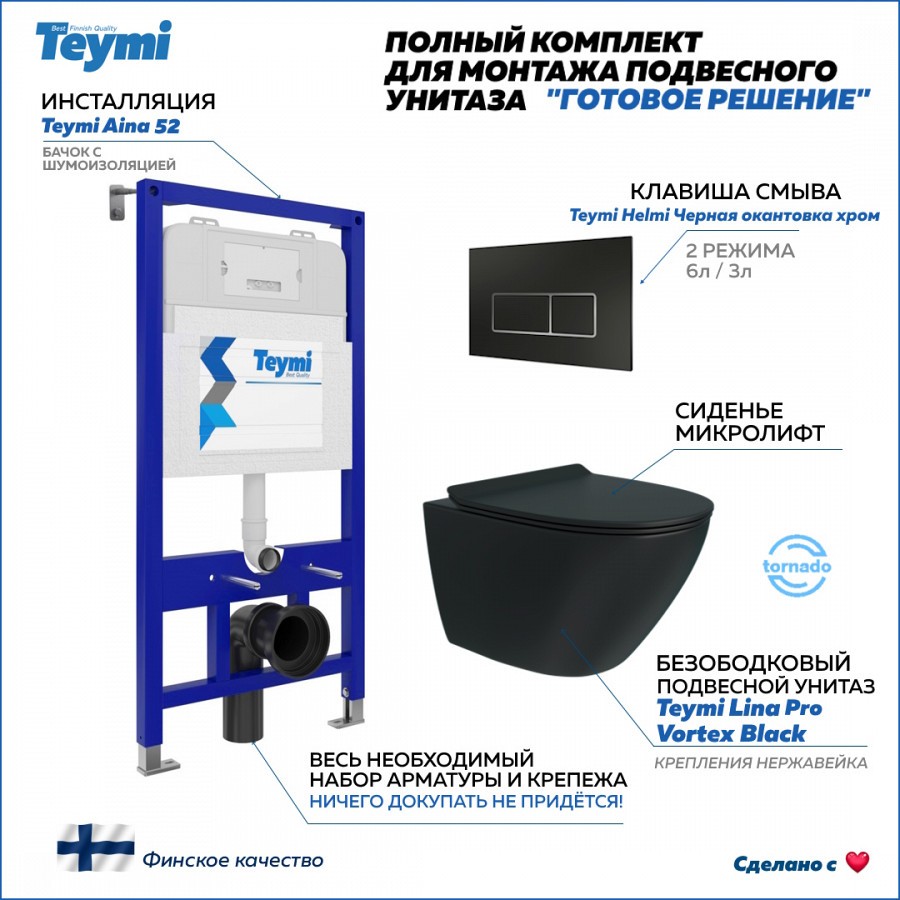 -- унитаз подвесной TEYMI LINA PRO VORTEX BLACK T40114.