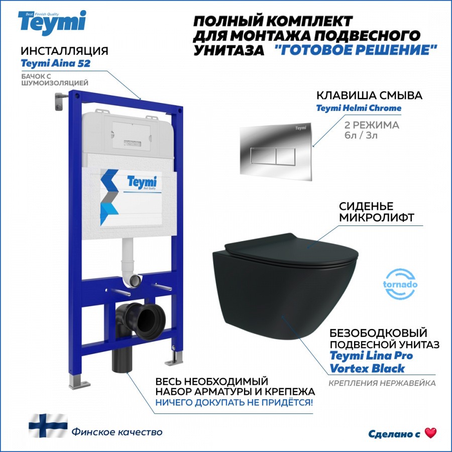 -- унитаз подвесной TEYMI LINA PRO VORTEX BLACK T40114.