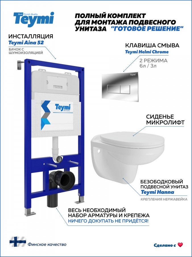 -- инсталляция TEYMI AINA 52 T70011 – монтажная рама из стального профиля толщиной 1.5 мм увеличенной ширины 52,5 см с дополнительными вертикальными усиливающими стойками, что позволяет выдерживать нагрузки до 400 кг;