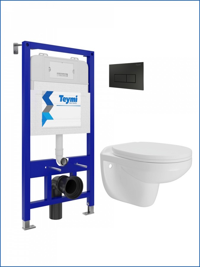 Инсталляция с унитазом комплект 5 в 1 Teymi унитаз подвесной безободковый Hanna кнопка черная F15854