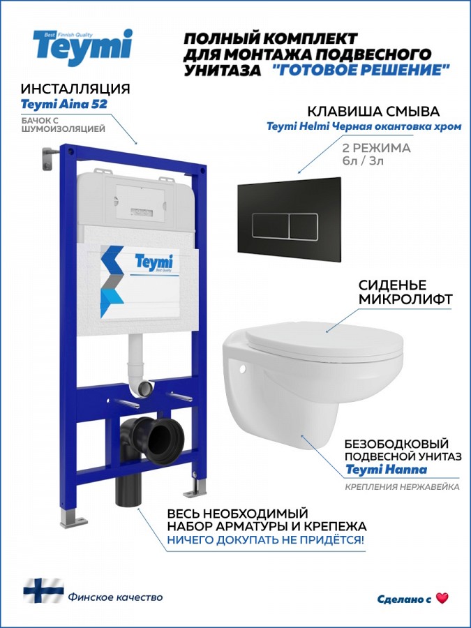 -- инсталляция TEYMI AINA 52 T70011 – монтажная рама из стального профиля толщиной 1.5 мм увеличенной ширины 52,5 см с дополнительными вертикальными усиливающими стойками, что позволяет выдерживать нагрузки до 400 кг;