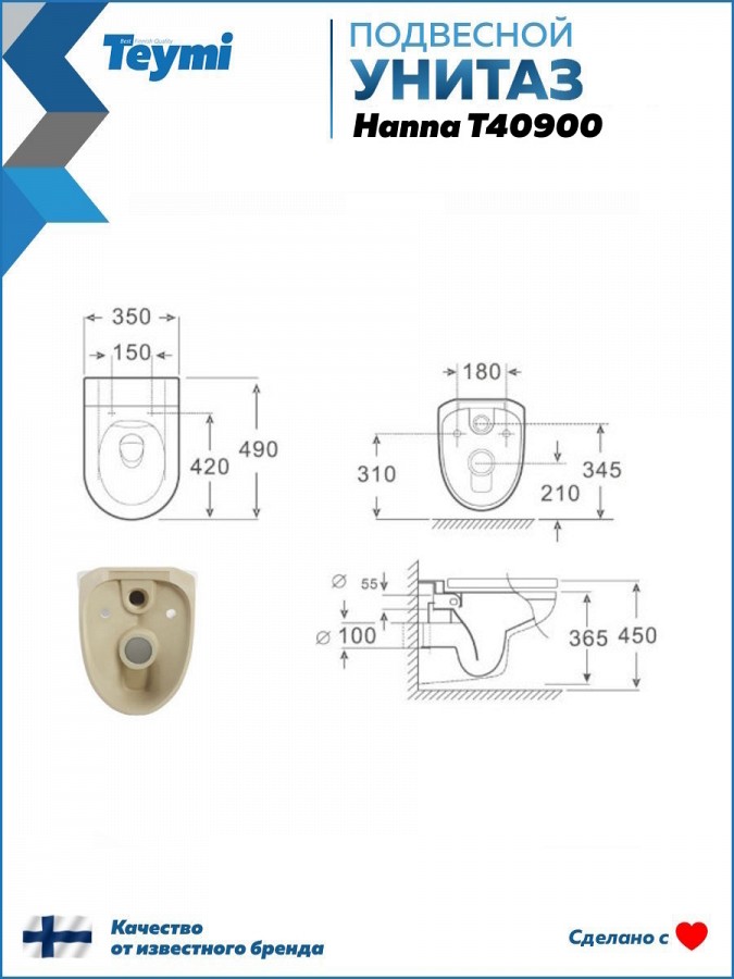 обращаем ваше внимание на то, что система инсталляции TEYMI AINA 52 может быть также укомплектована другими клавишами смыва или подвесными унитазами от бренда TEYMI (вы можете найти их на этом сайте по указанным артикулам).