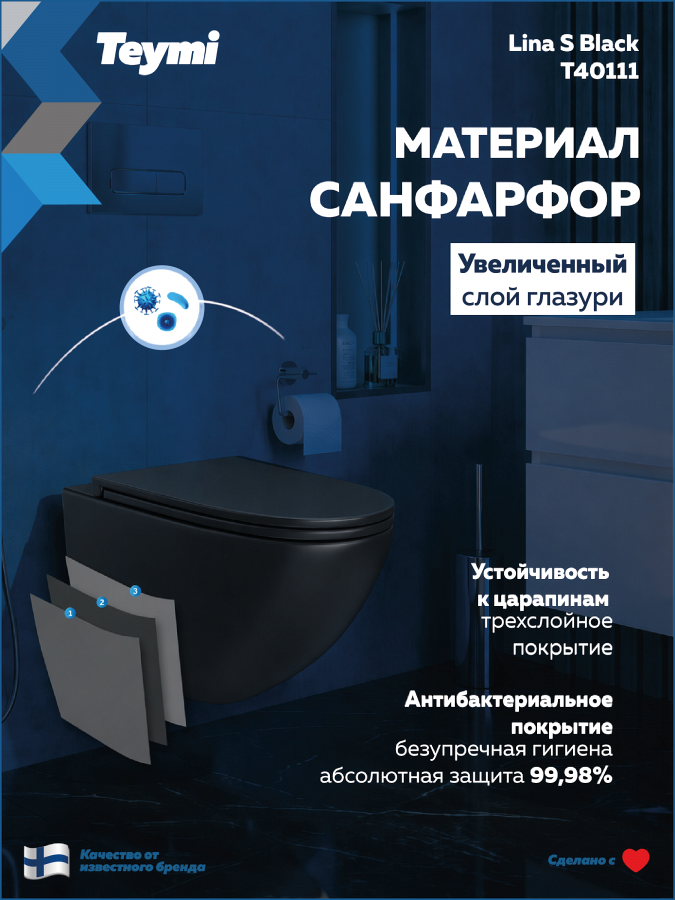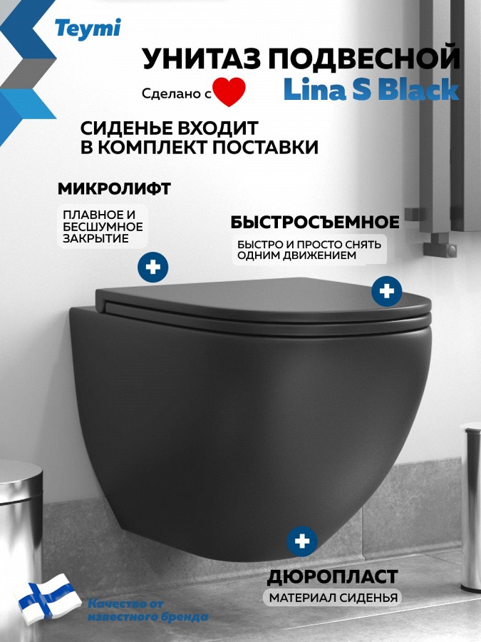 -- унитаз подвесной TEYMI Lina S Black черный матовый T40111;
