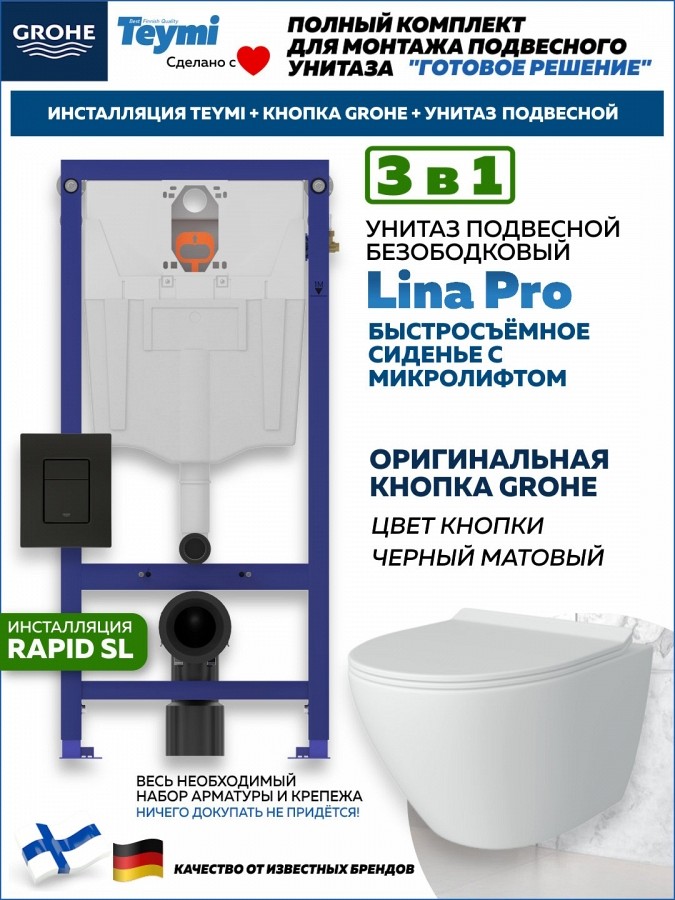 Уважаемые покупатели, обращаем ваше внимание на то, что система инсталляции Teymi Rapid SL может быть также укомплектована другими клавишами смыва или подвесными унитазами от бренда TEYMI (вы можете найти их по указанным артикулам).