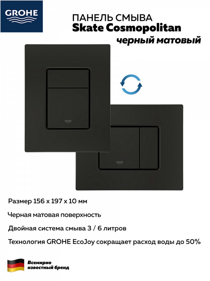 -- 2-режимный слив 3 / 6 л с возможностью регулировки;