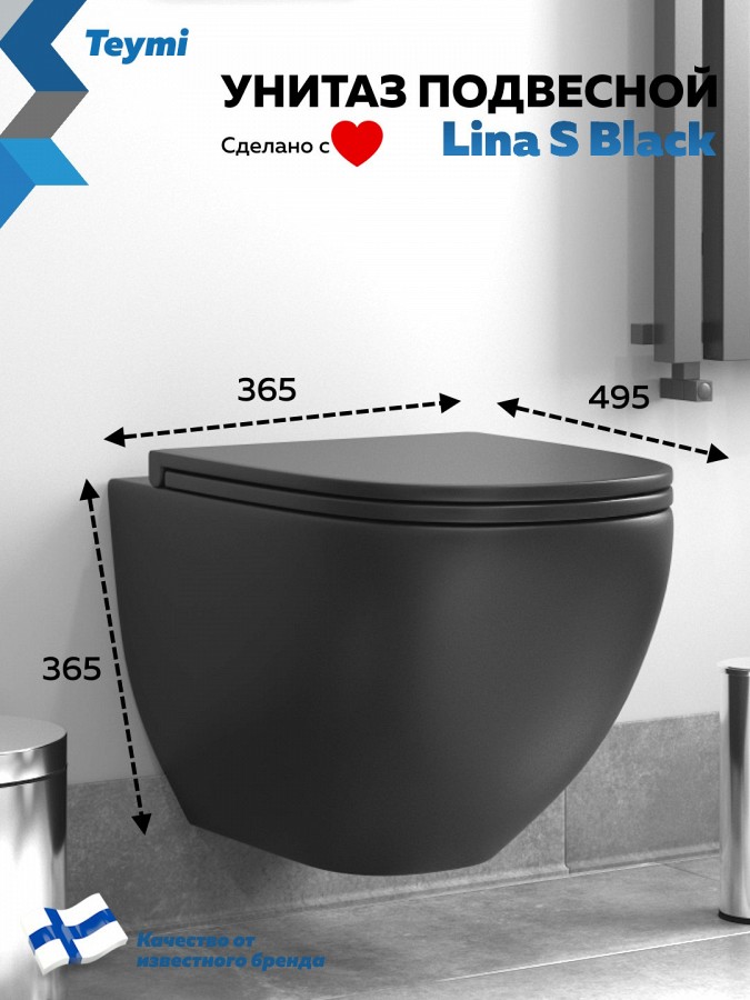 -- унитаз подвесной TEYMI Lina S Black черный матовый T40111;