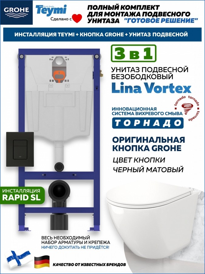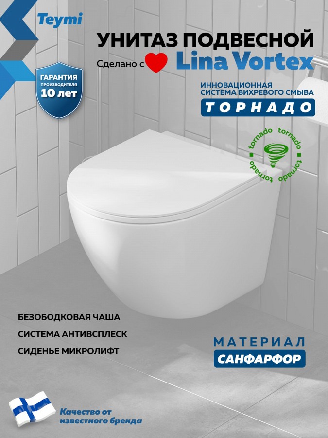 -- унитаз подвесной торнадо TEYMI Lina Vortex T40110;