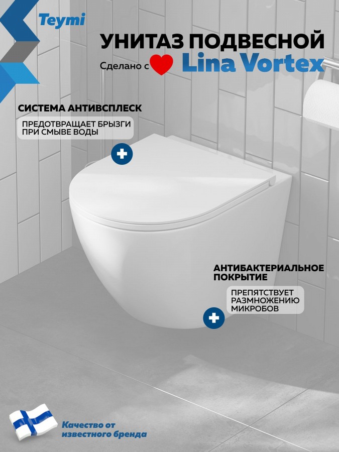-- унитаз подвесной торнадо TEYMI Lina Vortex T40110;