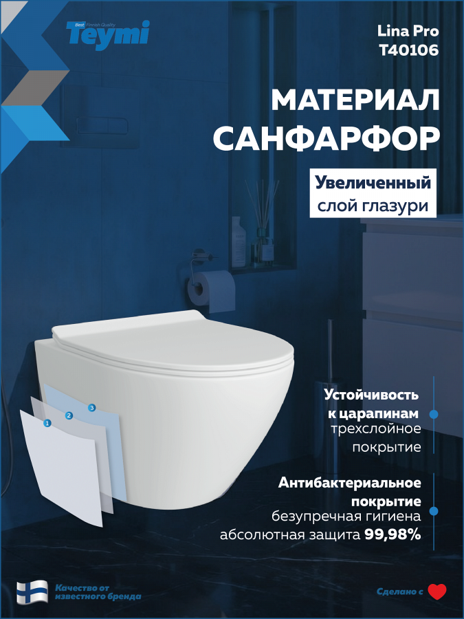 -- унитаз подвесной TEYMI Lina Pro T40106;