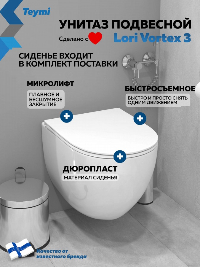 -- унитаз подвесной торнадо безободковый Teymi Lori Vortex 3 поколения T40506;