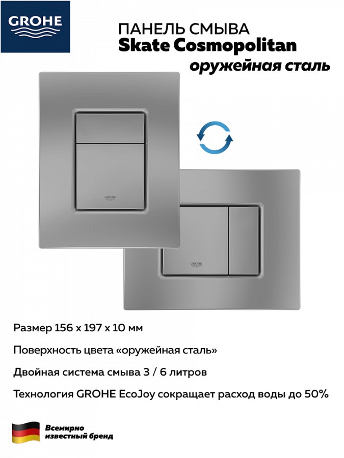 -- клавиша смыва GROHE цвет оружейная сталь;