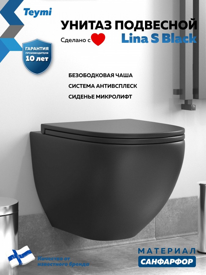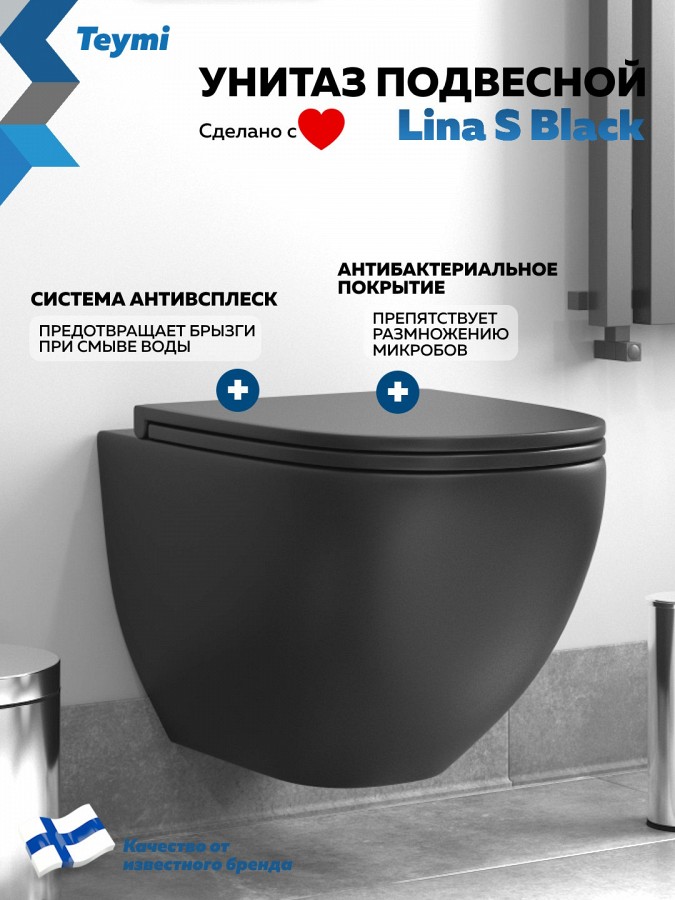-- унитаз подвесной TEYMI Lina S Black черный матовый T40111;