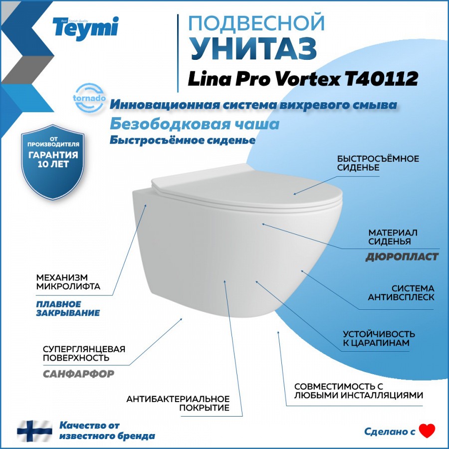 -- унитаз подвесной TEYMI LINA PRO VORTEX T40112;