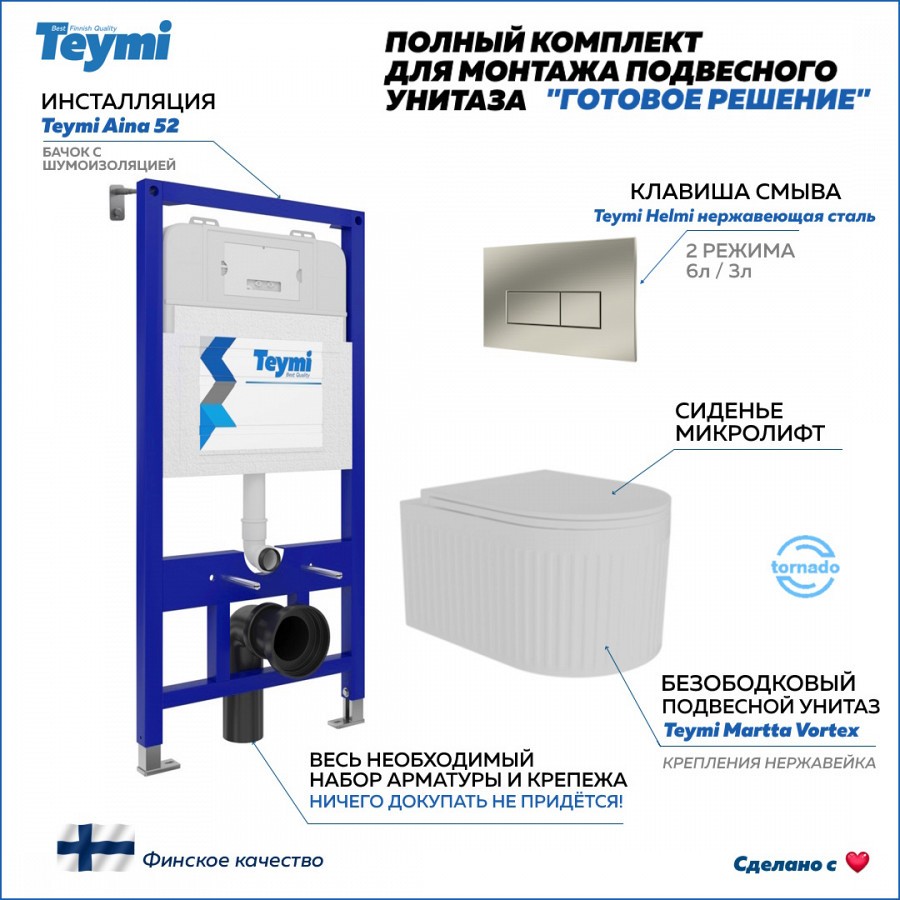 -- инсталляция TEYMI AINA 52 T70011 – монтажная рама из стального профиля толщиной 1.5 мм увеличенной ширины 52,5 см с дополнительными вертикальными усиливающими стойками, что позволяет выдерживать нагрузки до 400 кг;