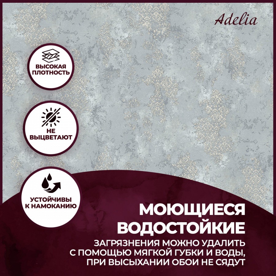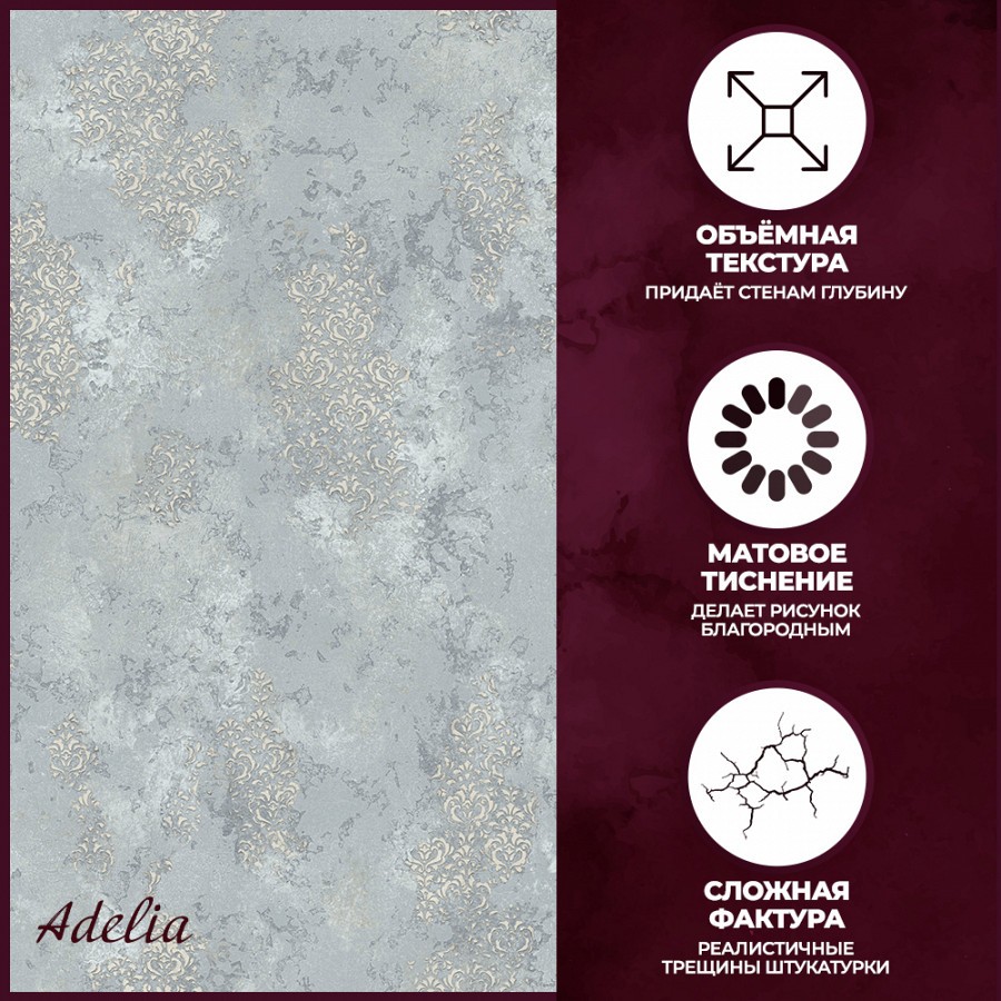<div>«Adelia» — новый шикарнейший дизайн в виде классических дамасков с перламутровым отливом под слоем старинной обветшалой штукатурки. <br /> Рисунок еле виднеется, пробиваясь сквозь бетонную поверхность. <br /> Будто сотни лет назад некие королевские покои сменились на каменные джунгли и оголили истинную историю этого места — зрелище поистине потрясающее!<br /> Сплошное нанесение перламутра даёт разнообразный визуальный эффект на полотне благодаря матовому тиснению на бэкграунде и глянцевому на дамаске, что делает дизайн более объёмным и реалистичным.<br /> Ещё одной особенностью коллекции является нестандартное нанесение глиттера: вместо основного элемента мы подчеркнули трещины штукатурки, получив в итоге сложную и интересную фактуру полотна.<br /> Колористики максимально природных оттенков: от цвета слоновой кости и светлого бежа до глубокого серого и темного черно-графитового с металлизированным дамаском.<br /> Коллекция «Adelia» выполнена в незаурядном классическом стиле в современной интерпретации с элементами лофта! Она впишется в любой интерьер спальни, гостиной или прихожей, выполненный в трендовых направлениях наших дней.</div>