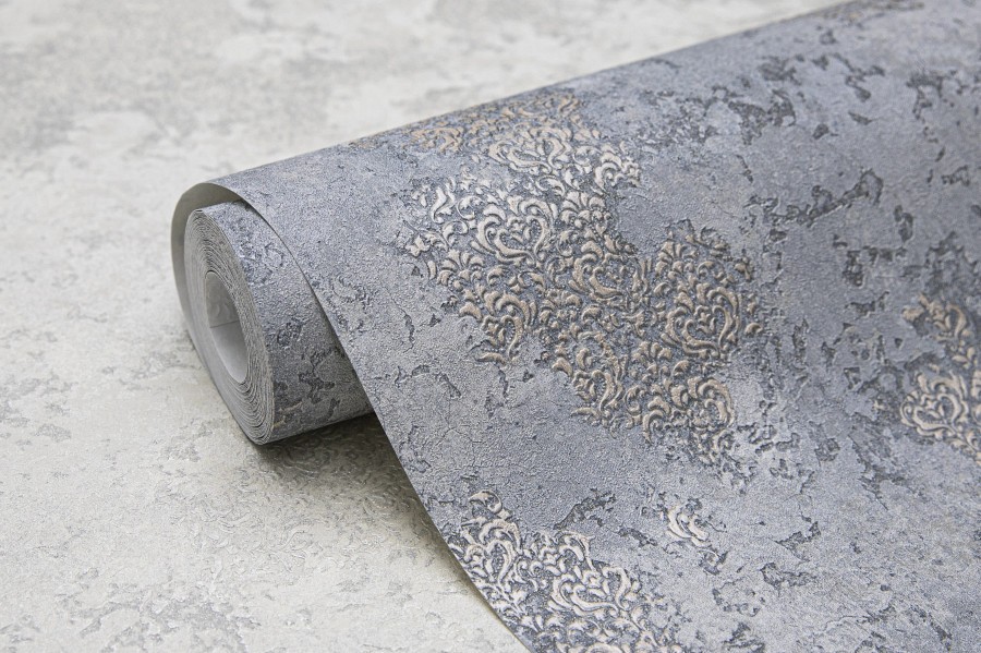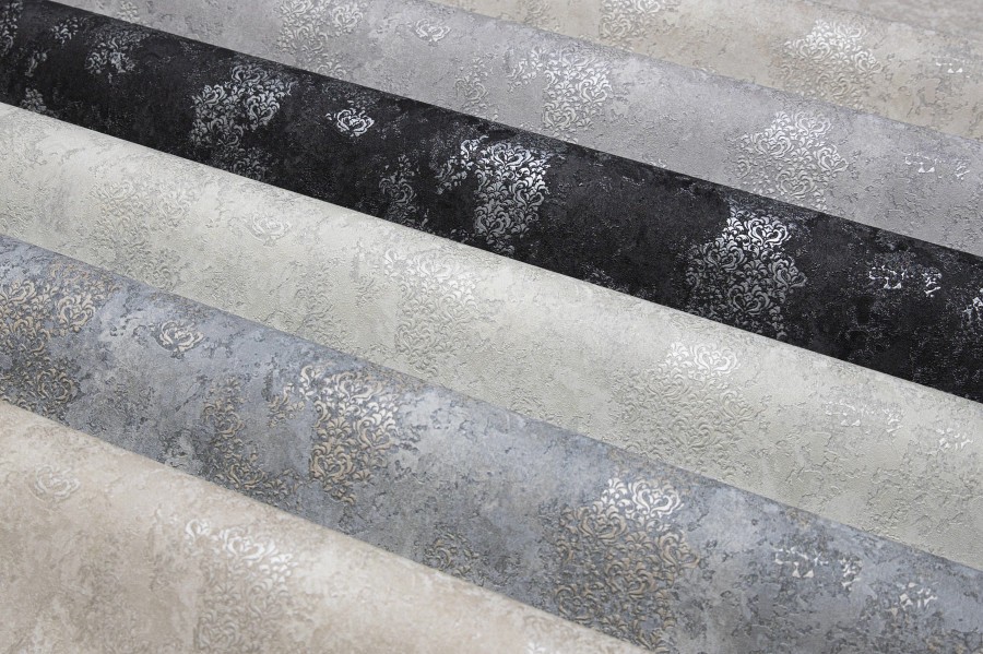 «Adelia» — новый шикарнейший дизайн в виде классических дамасков с перламутровым отливом под слоем старинной обветшалой штукатурки.