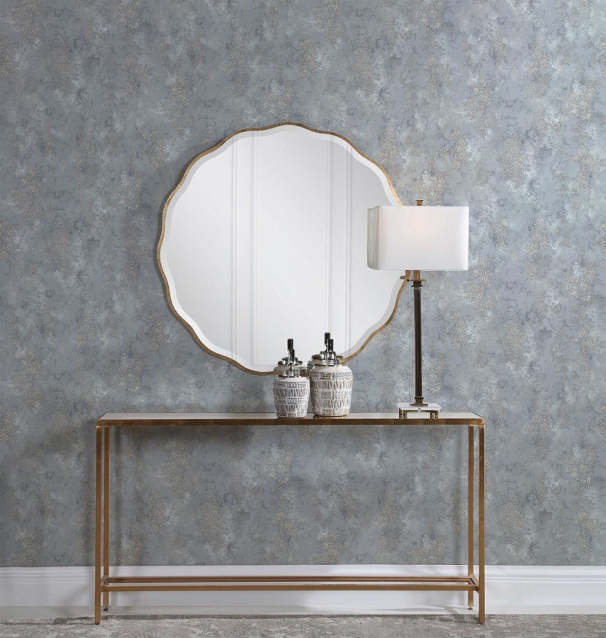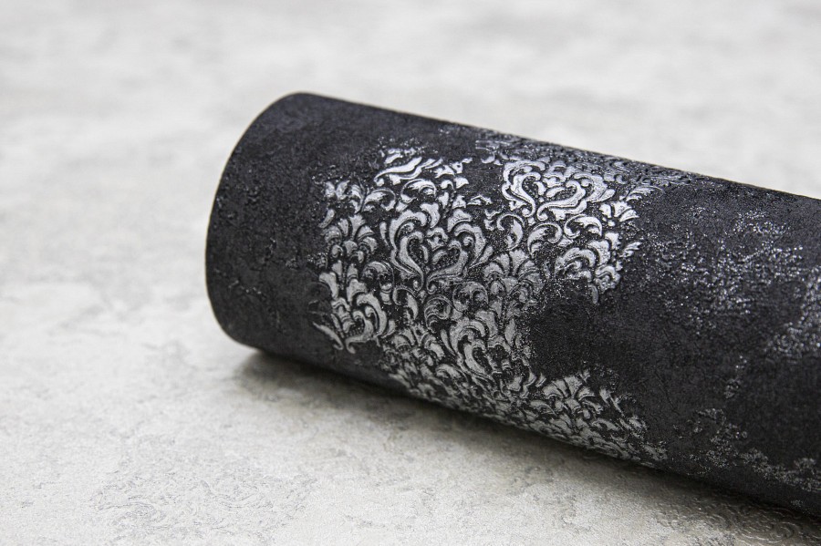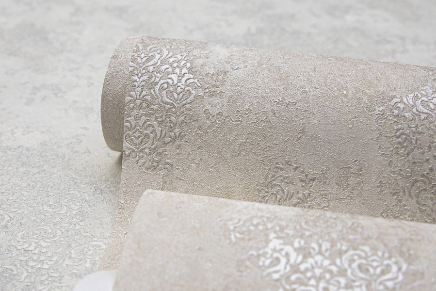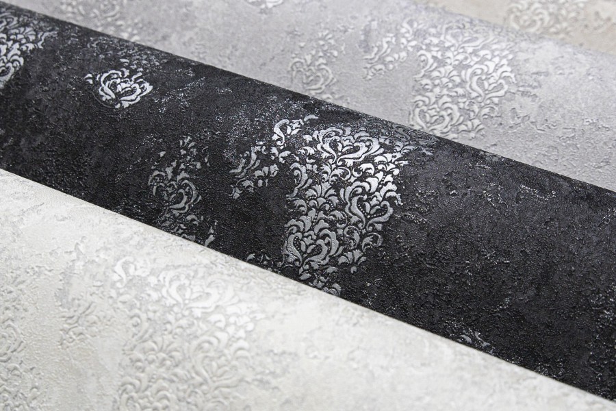 Сплошное нанесение перламутра даёт разнообразный визуальный эффект на полотне благодаря матовому тиснению на бэкграунде и глянцевому на дамаске, что делает дизайн более объёмным и реалистичным.