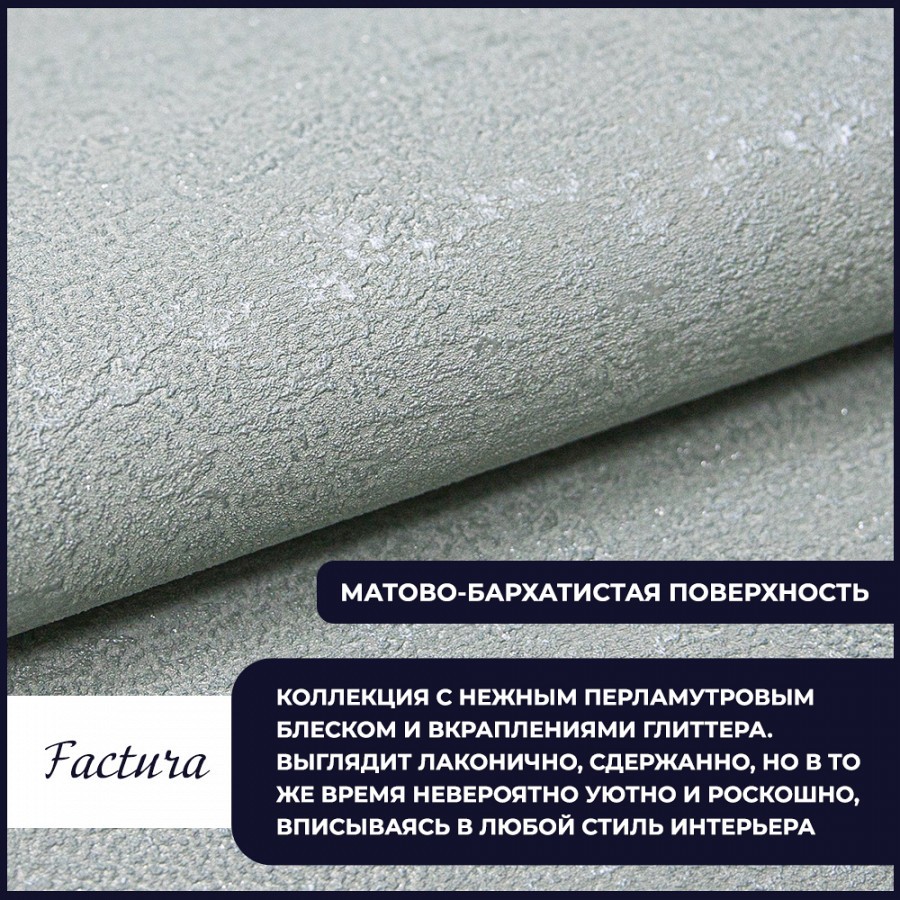 Наша новая коллекция "Factura" представлена матово-бархатистой поверхностью с нежным перламутровым блеском и вкраплениями глиттера. Выглядит лаконично, сдержанно, но в то же время невероятно уютно и роскошно, вписываясь практически в любой стиль интерьера.