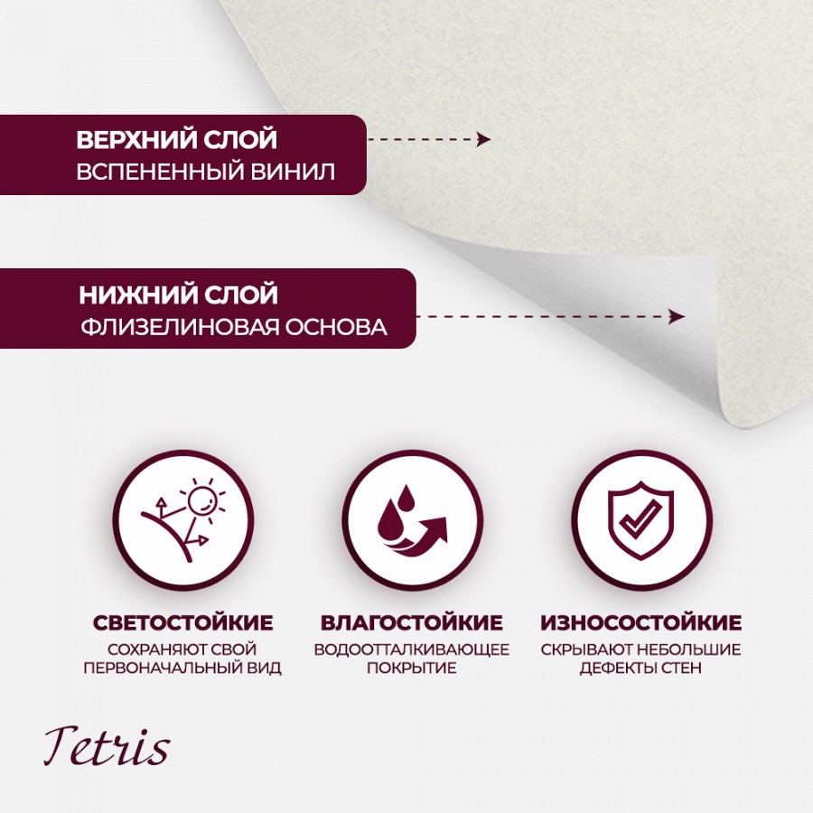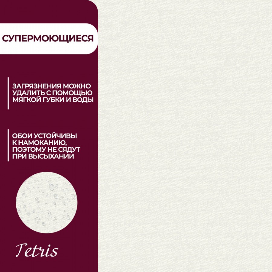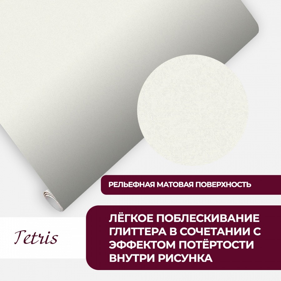 <div>Легкая абстракция с воздушной текстурой и несложным орнаментом в новой коллекции «Tetris» способна разгрузить пространство и сделать интерьер комфортным и уютным.<br /> На матовом полотне хаотичной россыпью нанесен мелкий неоднородный рисунок с геометрическими формами разного характера. За счет рельефной фактуры дизайн приобретает 3D эффект и выглядит объемно.<br /> Легкое поблескивание глиттера в сочетании с эффектом потертости внутри рисунка придает коллекции шарма и, одновременно, брутальности.<br /> Цветовая гамма в нейтральных оттенках бежа, слоновой кости, молочного, светло-серого и мокрого асфальта в тандеме с универсальным рисунком будет смотреться выигрышно в любом помещении, будь то спальня или прихожая.<br /> </div>