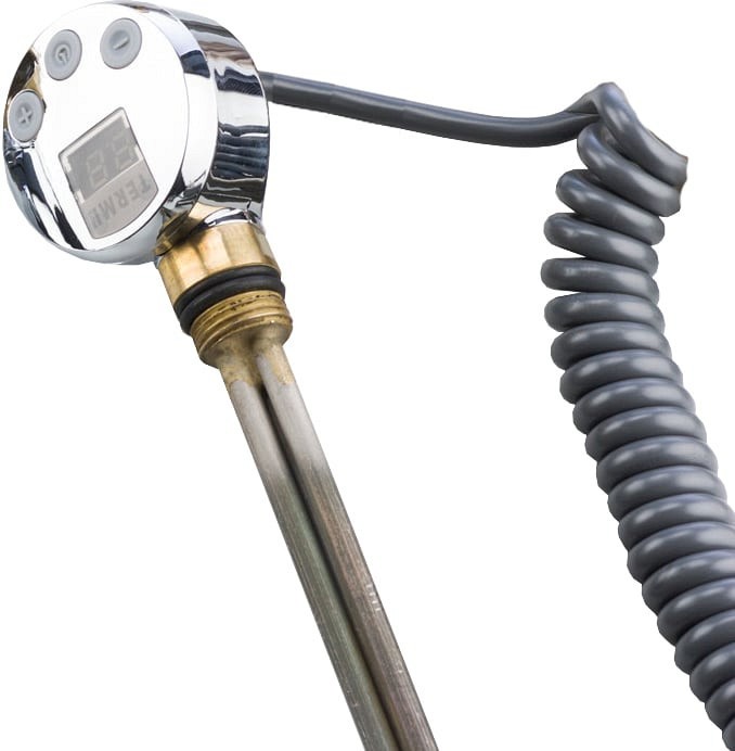 Неподвижный электрический полотенцесушитель цвета хром с 9 перекладинами.   Мощность: 300 Вт.  С электровыключателем.  Терморегулятор в комплекте.  Автоотключение при нагреве.  Гарантия на ТЭН: 1 год.  Материал: Латунь.  Теплоноситель антифриз.  С таймером