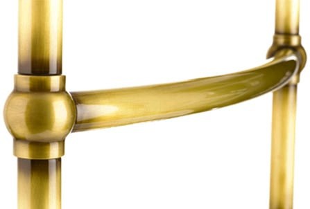 Неподвижный электрический полотенцесушитель бронзового цвета с 5 перекладинами.   Предназначен для системы горячего водоснабжения.  Межосевое расстояние: 50 см.  Гарантия на ТЭН: 1 год.  Количество перекладин: 5 шт.  Материал: латунь.  Рабочее давление: 16 бар.  Макс. температ. теплоносителя: 110.