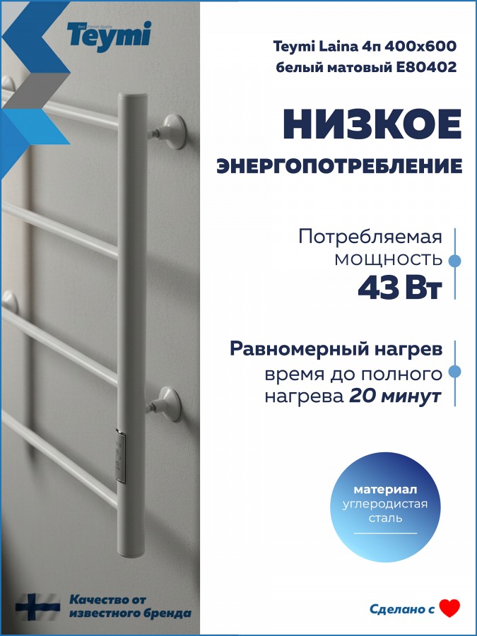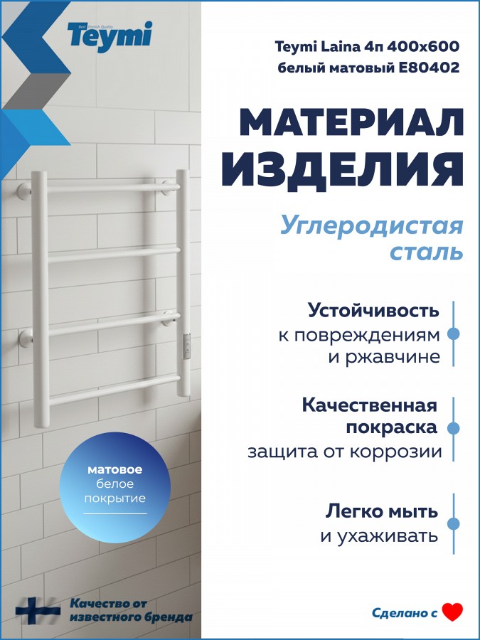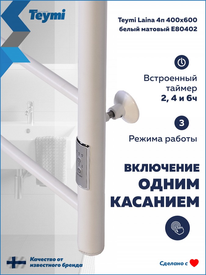 Teymi Laina — это надежность от финского бренда с расчетным сроком службы 10 лет и гарантией 1 год. Сделайте вашу ванную комнату по-настоящему уютной и технологичной!