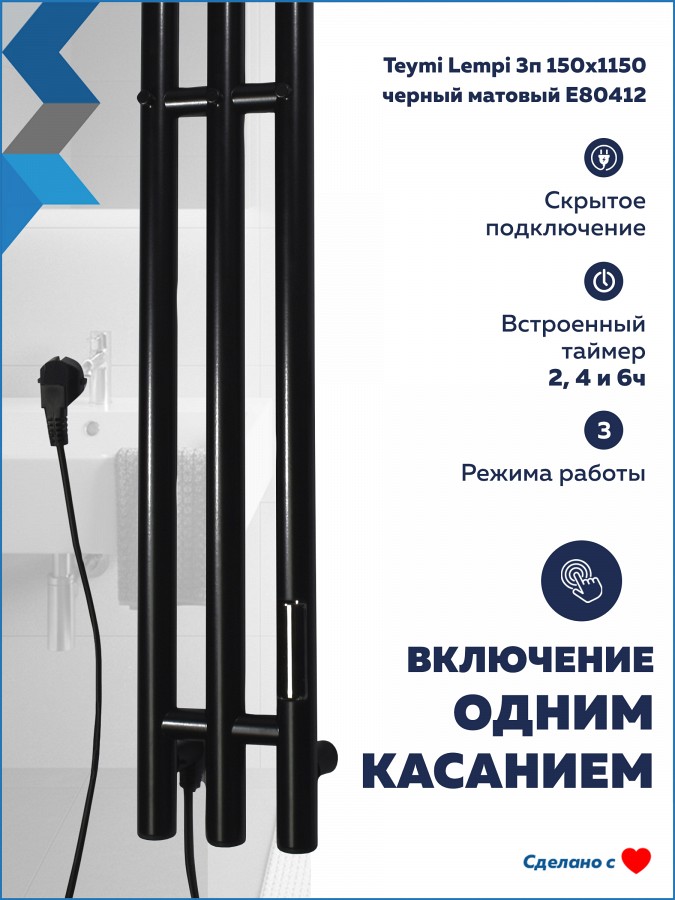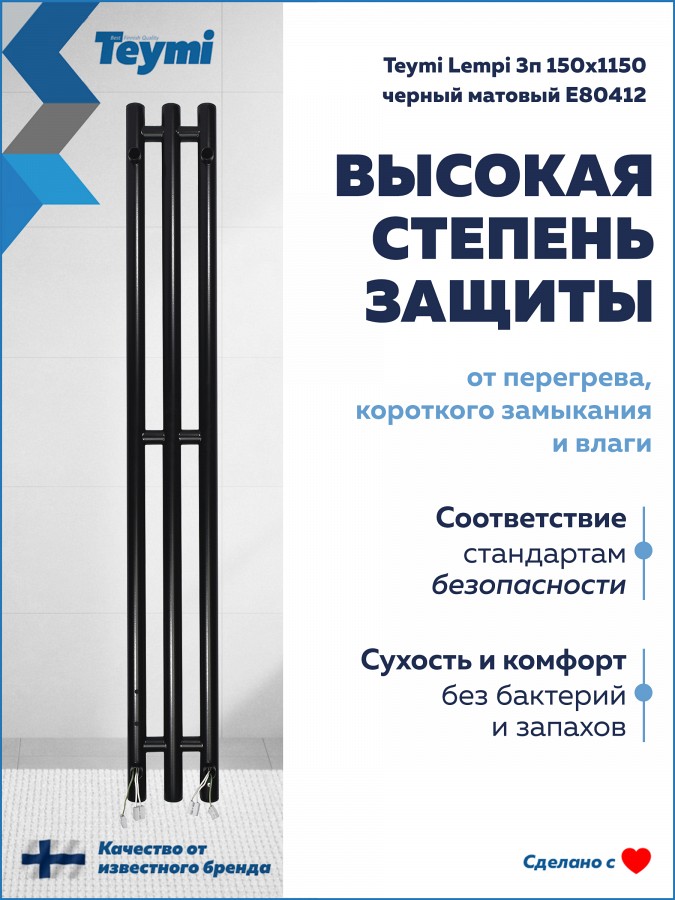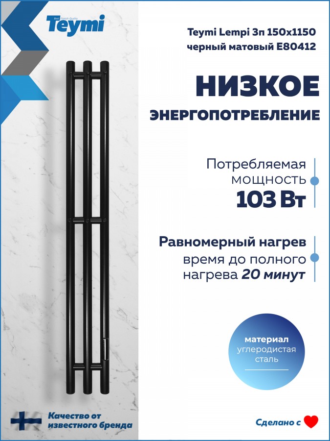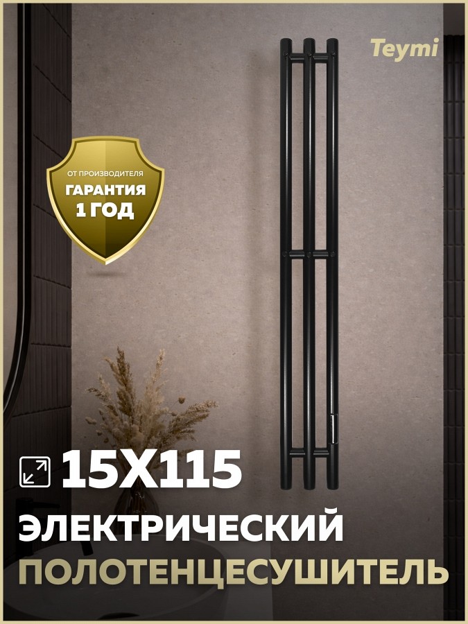 Электрический полотенцесушитель Teymi Lempi E80412 в формате вертикальной I-образной колонны — это воплощение архитектурного минимализма и высокой функциональности. Благодаря своей сверхкомпактной форме и глубокому черному матовому покрытию, модель станет выразительным акцентом интерьера, обеспечивая быстрый нагрев текстиля и эффективный обогрев помещения площадью до 1,5 кв. м.