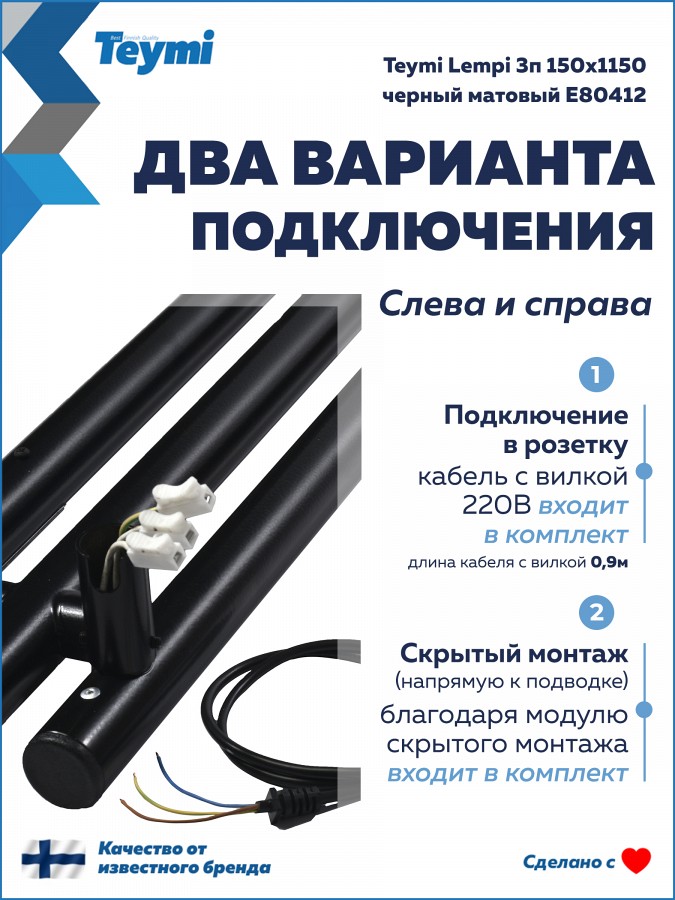 Teymi Lempi — это финское качество с расчетным сроком службы 10 лет. Подарите своей ванной комнате новый уровень комфорта и технологичного стиля.