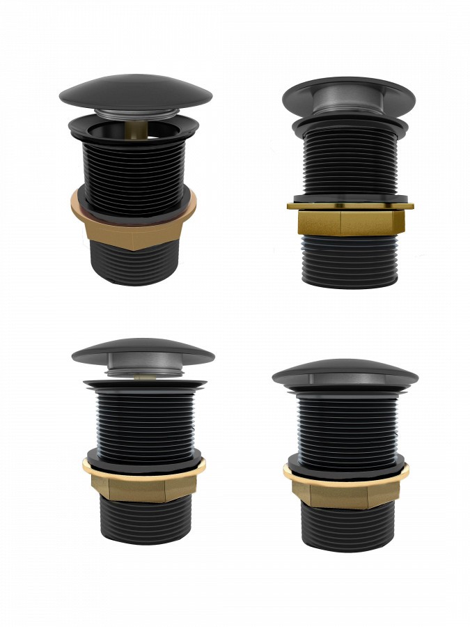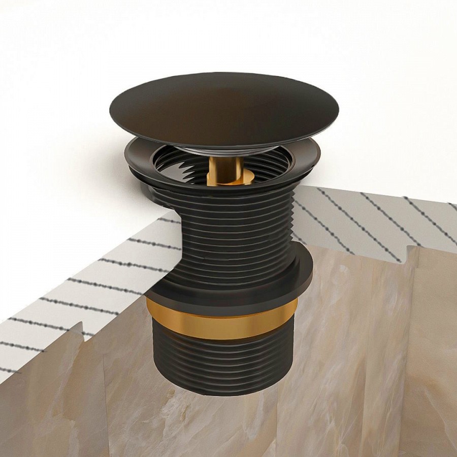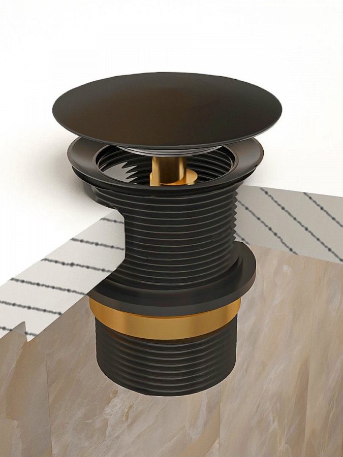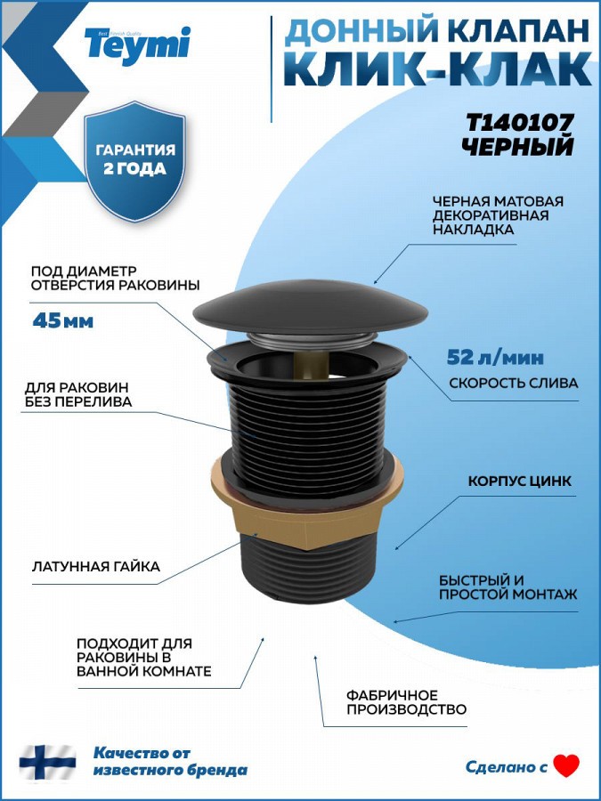 2. Донный клапан Teymi для раковины без перелива, черный.