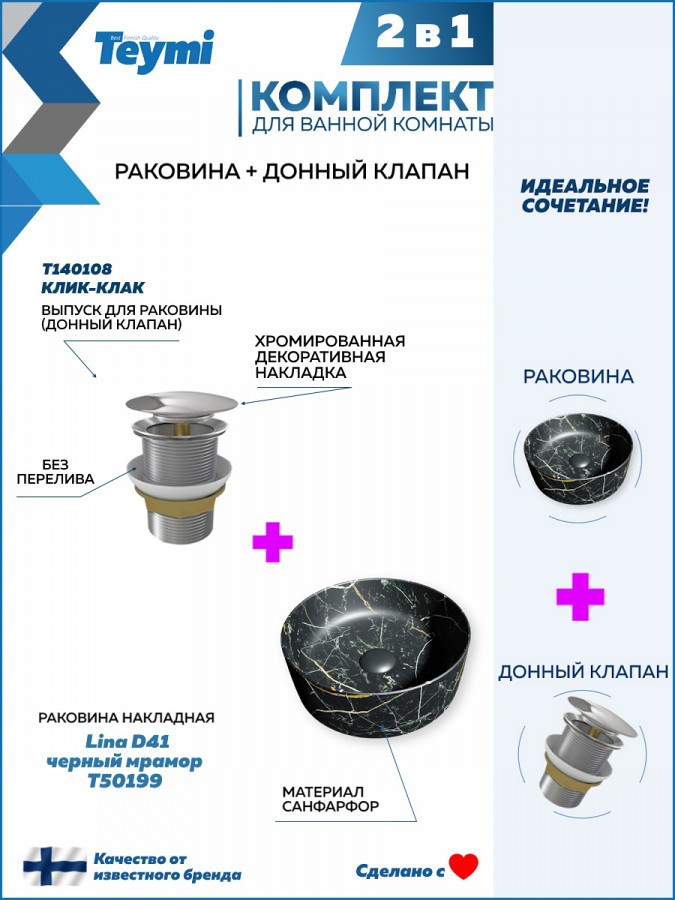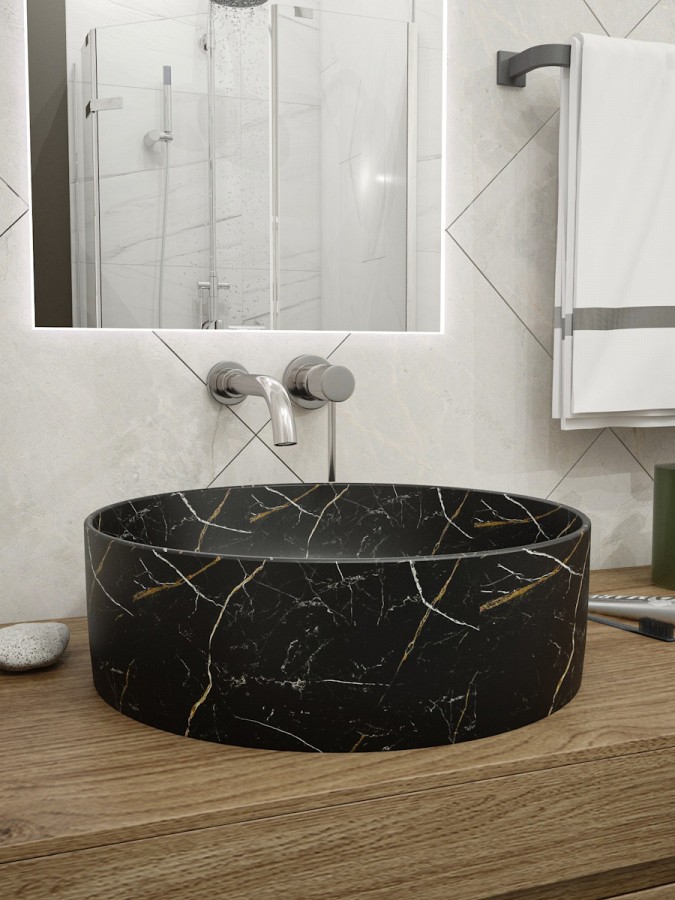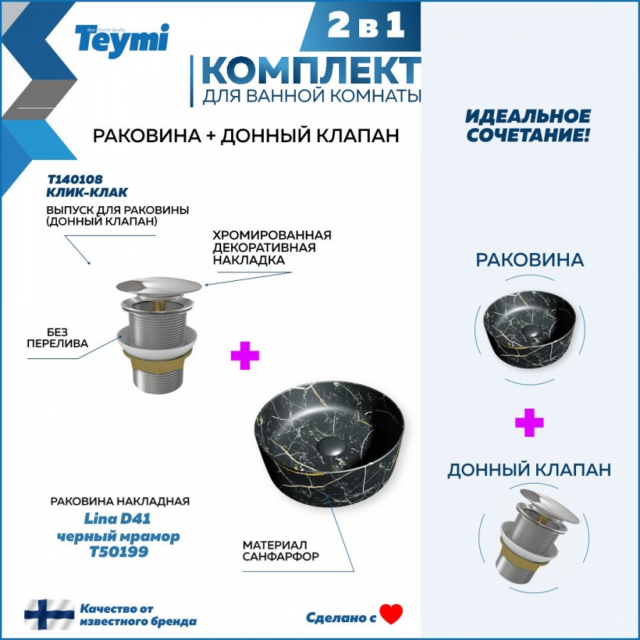 1. Раковина Teymi Lina D41 накладная, Черный Мрамор.
