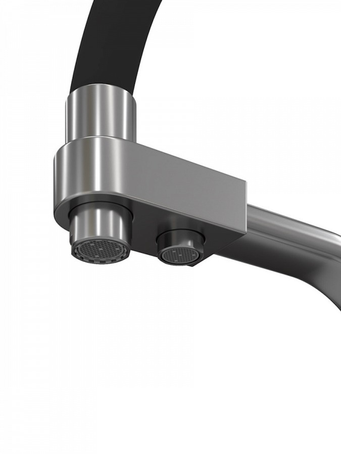 Гибкий поворотный излив позволяет легко направлять поток воды в нужную сторону — это особенно удобно при мытье посуды, овощей и наполнении крупных емкостей. Встроенный аэратор насыщает воду воздухом, формируя мягкую струю без брызг и снижая расход воды до 40%.