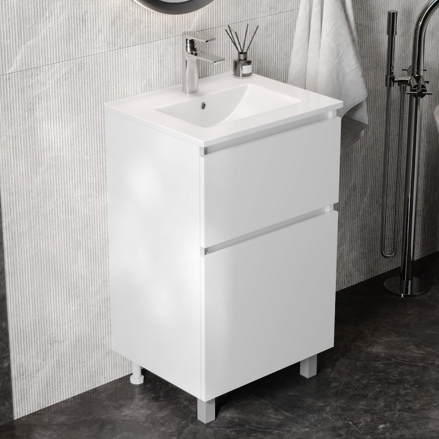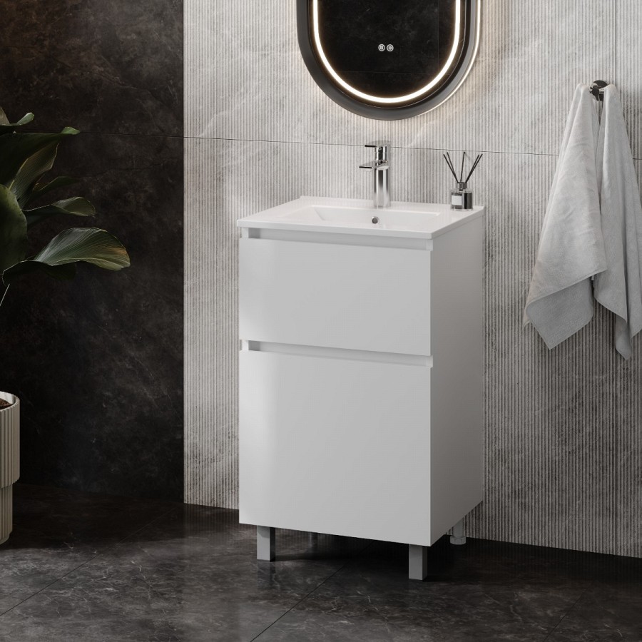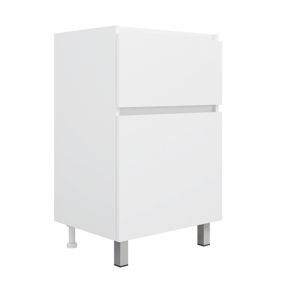 Тумба Laina 50 белый матовый — это практичное и эстетичное решение для небольшой ванной комнаты, объединяющее минималистичный дизайн, удобство повседневного использования и долговечность конструкции.