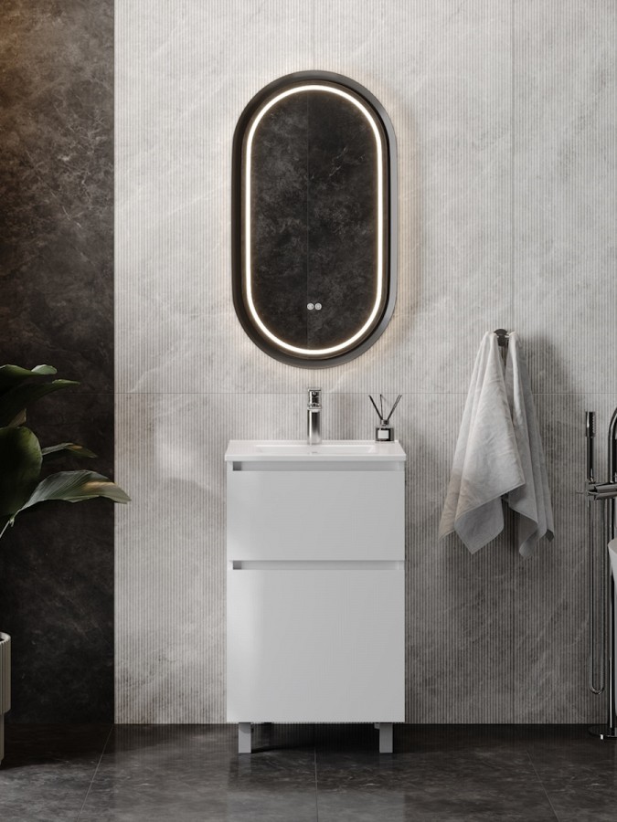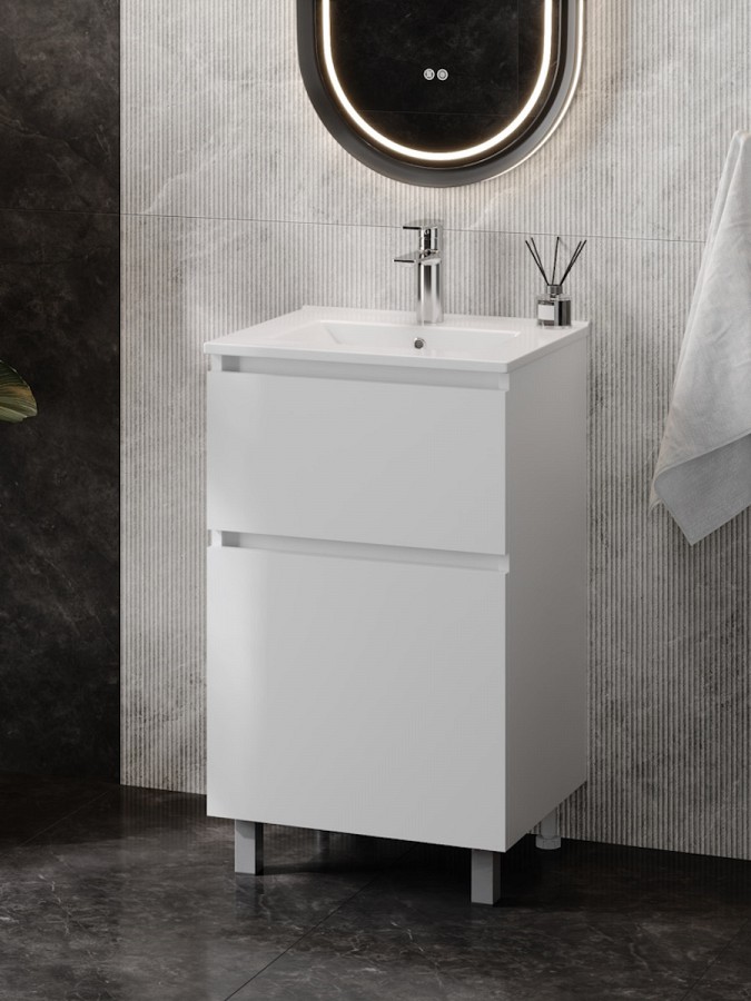 Laina 50 белая с умывальником Ritta 50 станет достойным выбором для тех, кто ищет современную мебель для ванной комнаты, ценит удобство и надёжность, а также стремится сохранить визуальную чистоту и уют интерьера.