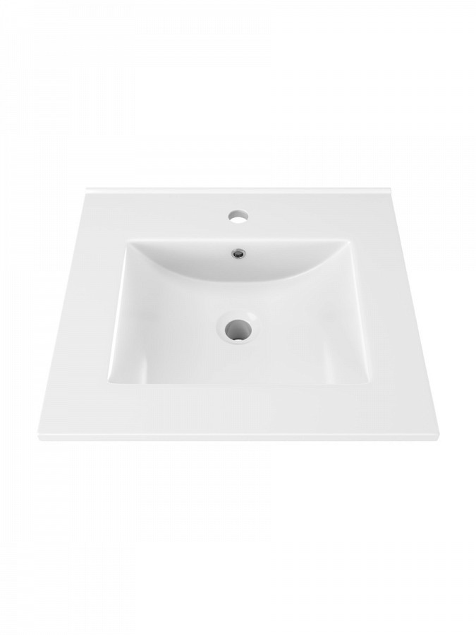 Комплект оснащён умывальником Ritta 50 из санфарфора с белоснежной глянцевой поверхностью. Размеры раковины — 510×465×170 мм, глубина чаши — 105 мм, что обеспечивает комфортное использование при компактных габаритах. В модели предусмотрено отверстие для смесителя, перелив и слив диаметром 45 мм. Дополнительное удобство создают боковые крылья шириной по 77,5 мм, которые можно использовать для размещения мыла, зубных щёток или других необходимых предметов. Поверхность умывальника устойчива к влаге и легко очищается.