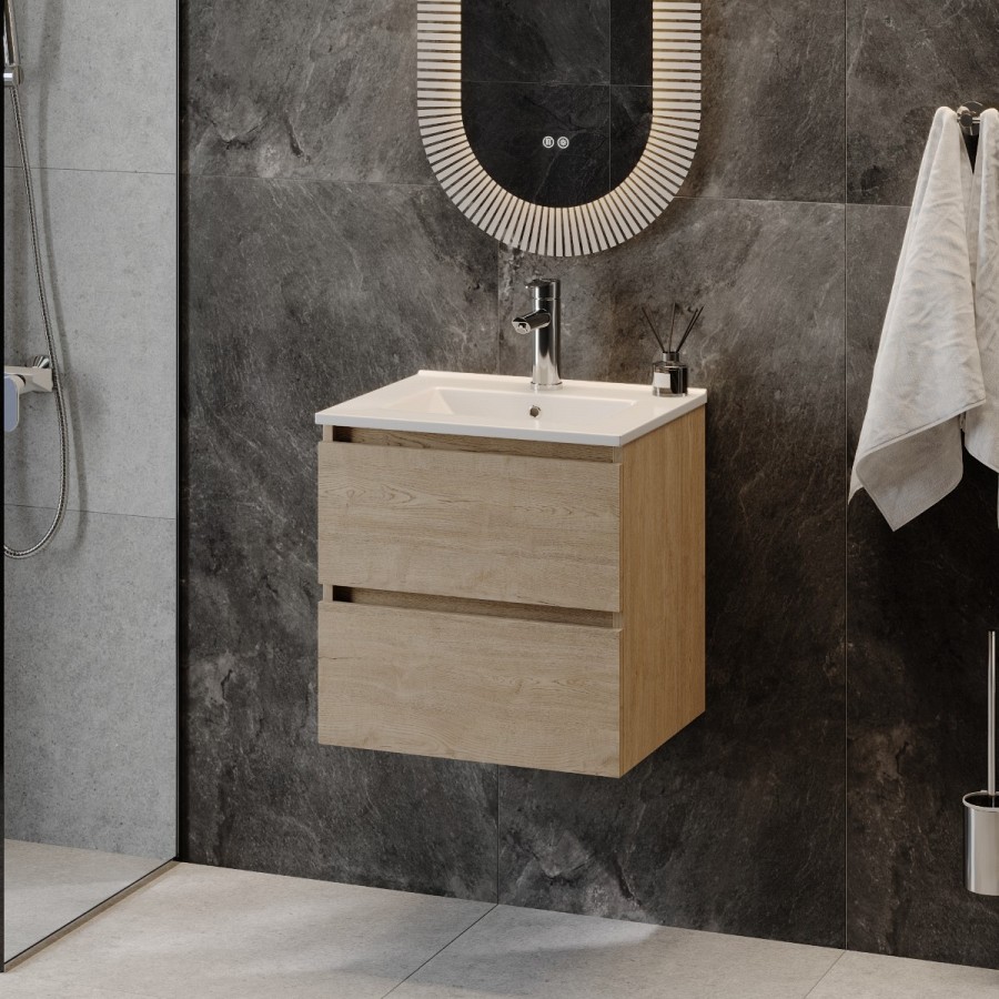 Подвесная тумба Laina 50 дуб светлый станет отличным выбором для тех, кто ищет удобное, надёжное и эстетичное решение для ванной комнаты, объединяющее в себе современный дизайн и практичность.